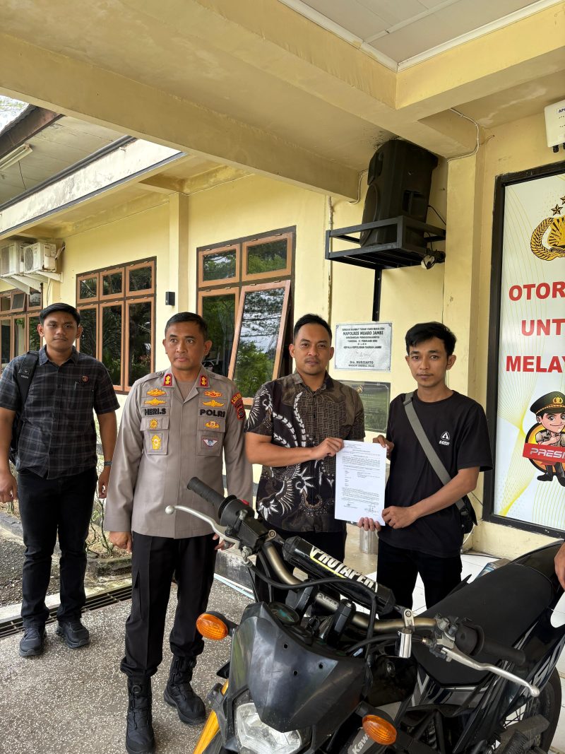 Muaro Jambi,MA – Wujud nyata kepedulian dan pelayanan kepada masyarakat ditunjukkan oleh Kapolres Muaro Jambi, AKBP Heri Supriawan, S.I.K., M.H., dengan menyerahkan langsung satu unit sepeda motor hasil ungkap kasus pencurian kendaraan bermotor (curanmor) kepada pemiliknya, Sdr. Andri (25), bertempat di halaman Mapolres Muaro Jambi.