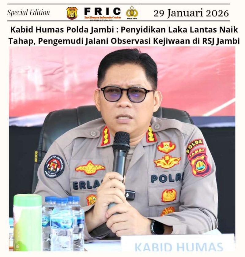 Jambi,MA – Kepolisian Darah Jambi melakukan update perkembangan penyidikan kasus kecelakaan lalu lintas oleh seorang pengemudi mobil pajero yang menabarak pagar Mapolda Jambi.