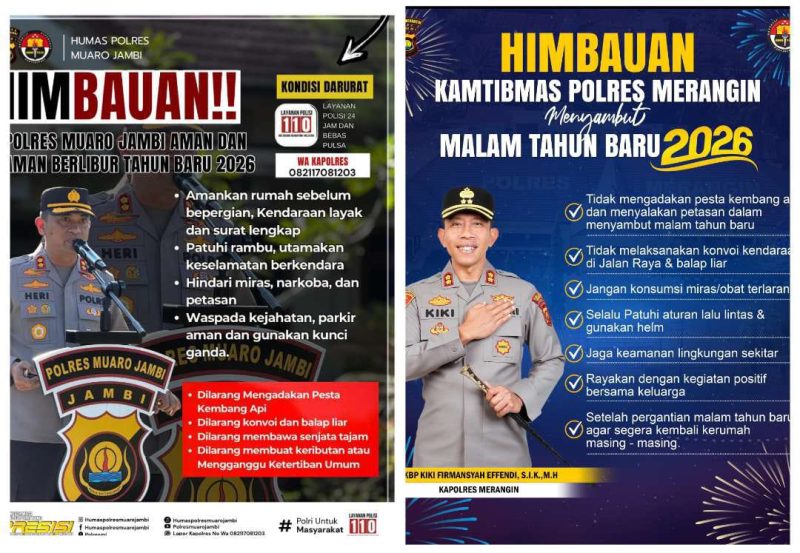 JAMBI,MA – Sesuai Intruksi Kepala Kepolisian Republik Indonesia (Kapolri ) Jenderal Pol. Drs Listyo Sigit Prabowo Msi mengintruksikan kepada seluruh Kapolda dan jajaran untuk menghimbau kepada masyarakat untuk tidak nyalakan pesta kembang api dan perasan saat malam pergantian tahun 2026, kebijakan ini bersifat nasional dan teknis pengawasan ini diserahkan kepada Kepolisian Daerah